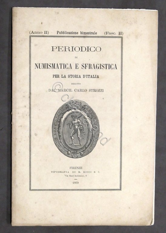 C. Strozzi - Periodico di Numismatica e Sfragistica per la Storia d'Italia - Anno II - Fasc. II - 1869    Pag. 50 ca. ; 2 tavole f.t. Indice del fascicolo come da foto d'inserzione. Copertina morbida - Testo in italiano. Buone condizioni.