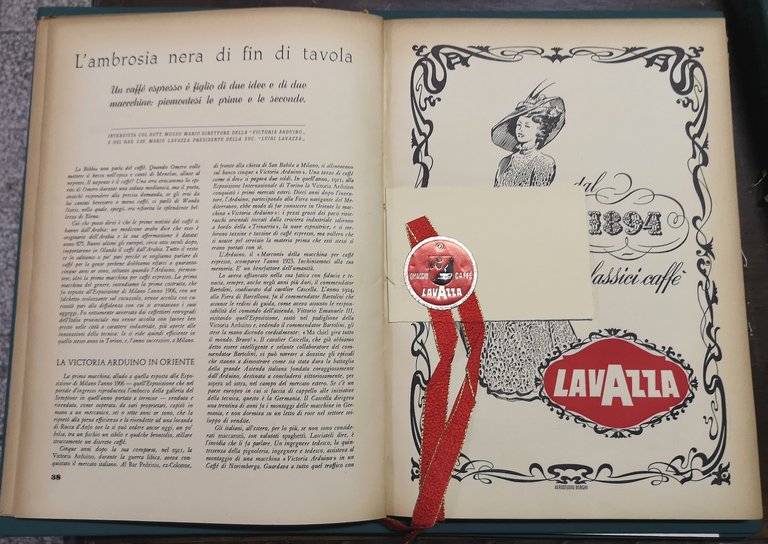 >in-4, pp. 102, (6), con numerose illustrazioni a colori e in nero, n.t. e f.t., anche a piena pagina; cart. editoriale figurato in nero, dorso muto. Edizione originale, edita nel 57° anno della società Luigi Lavazza. Bella e curiosa monografia dedicata al Caffè e a caffé e ristoranti storici italiani, con riproduzioni di affiche pubblicitarie, firme di celebri gastronomi e vedute di locali, osterie e caffetterie storici, vi è incluso anche un simpatico approfondimento sulla Coca Cola. Buon esemplare.