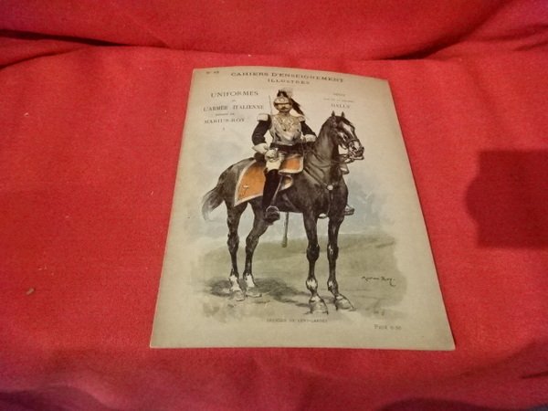 Paris, Ludovic Baschet, Éditeur, s.d. (vers 1895); in-8 (162 x 220 mm), 16 pp., broché. Illustrations : Officier de Cent-Gardes, Élèves des collèges militaires et de l'École militaire, Élèves de l'École normale de Cavalerie, Officier général, Sergent de Piemonte Reale cavalerie, Clairon alpin, Clairon de Bersaglieri, 10ème régiment de Lanciers. Nombreuses illustrations en noir et blanc et en couleurs, par Marius Roy.