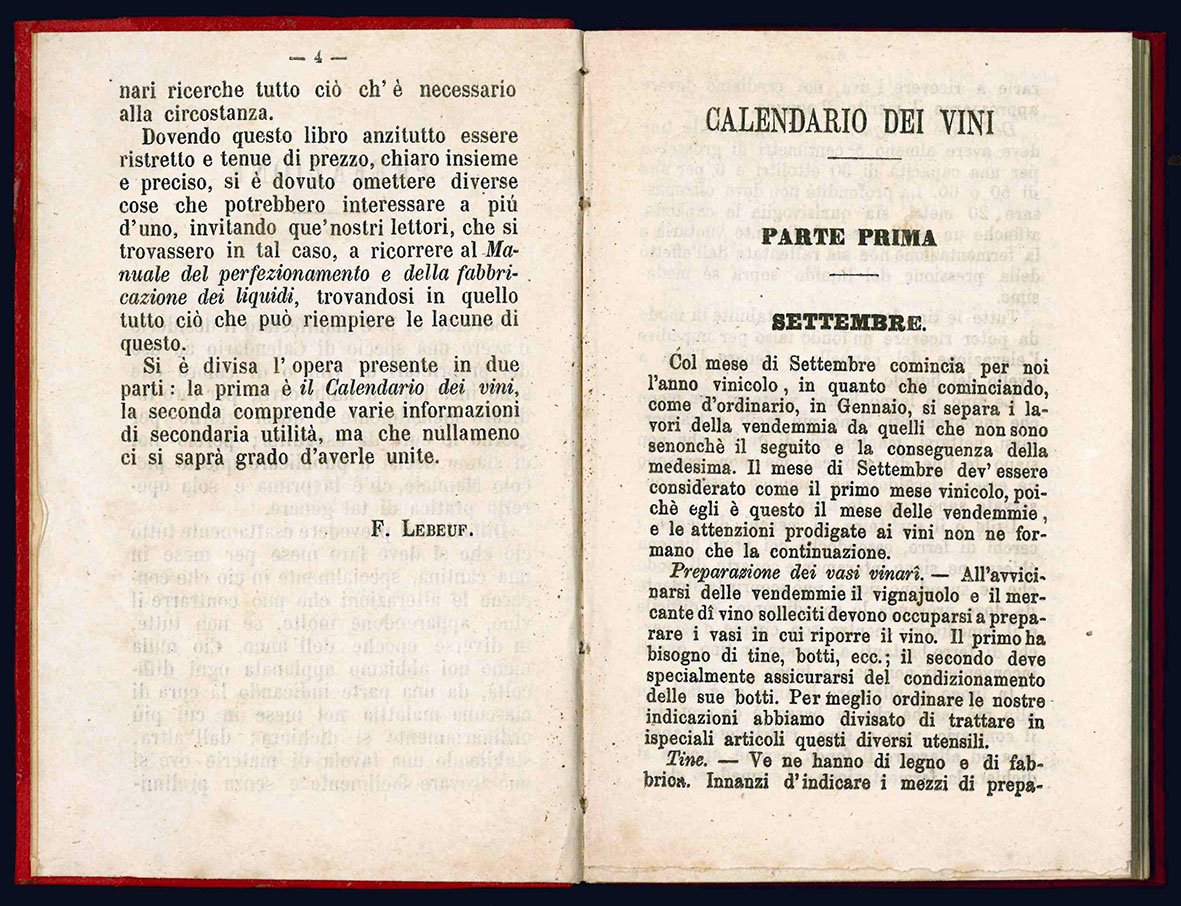 Calendario dei vini o Istruzioni sulle cure da eseguirsi mensilmente per conservare, migliorare i vini vecchi o nuovi e risanare quelli che sono ammalati. Ad uso dei proprietari di vigne, negozianti, assaggiatori di vini, bottai, cantinieri, ecc.