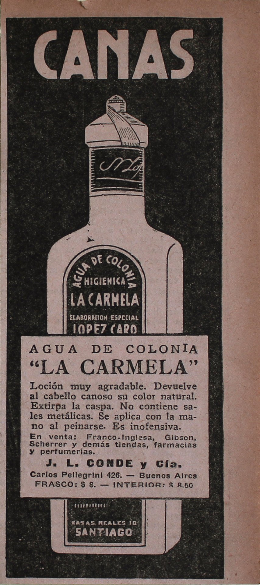Canas. Agua de Colonia La Carmela - Advertising 1922