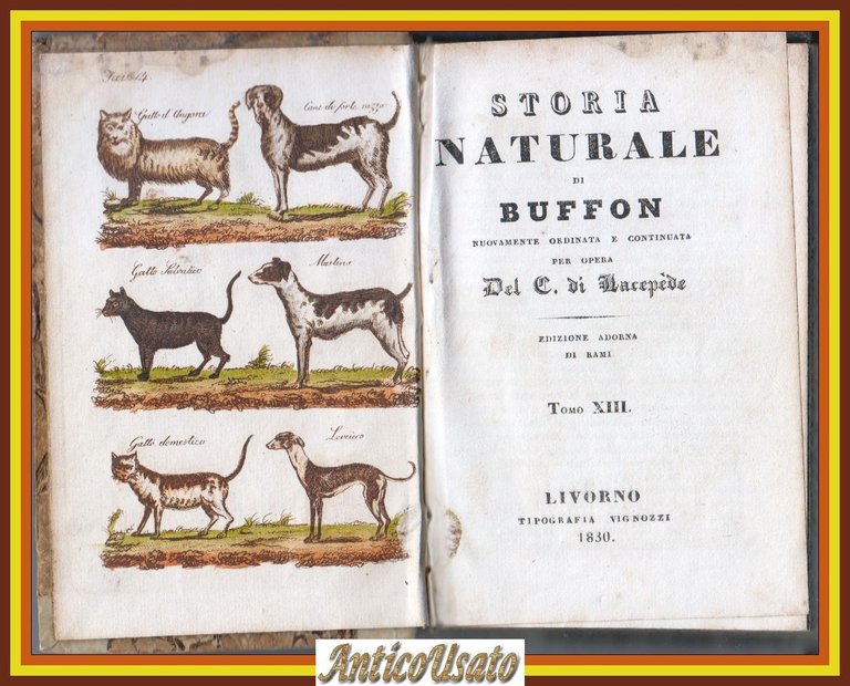 CANE GATTO QUADRUPEDI Storia Naturale di Buffon volume 13 14 Vignozzi 1830 Libro