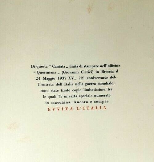 CANTATA PER IL DUCE di Geo Renato Crippa 1937 Queriniana Libro Poesia Fascismo