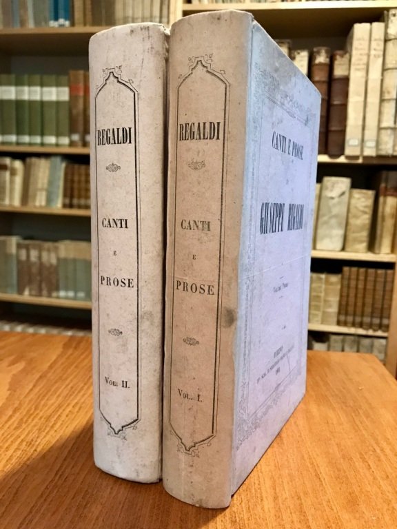 2 volumi in-8° (cm. 23), legature editoriali in cartonato a stampa (date diverse dal frontespizio; tracce di sporco); pp. 480; 591 [1] con un ritratto litografico dell'autore f.t.; fioriture diffuse. Edizione corretta e accresciuta. Raccolta di buona parte delle opere del noto scrittore e poeta novarese. Dicitura fasulla di «decima edizione». Buon esemplare genuino.