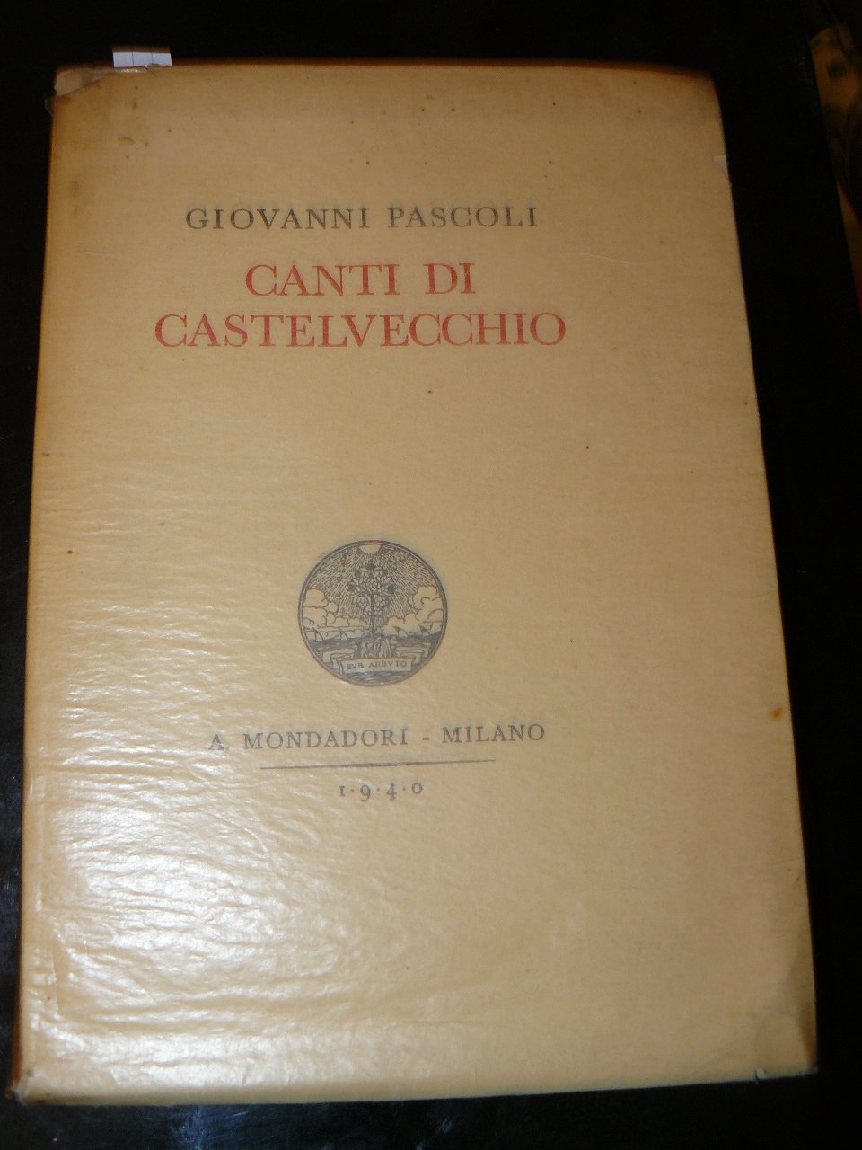 In-8°, pp. 254, brossura editoriale. Due articoli di quotidiano sul Pascoli ripiegati a mo' di segnalibro.