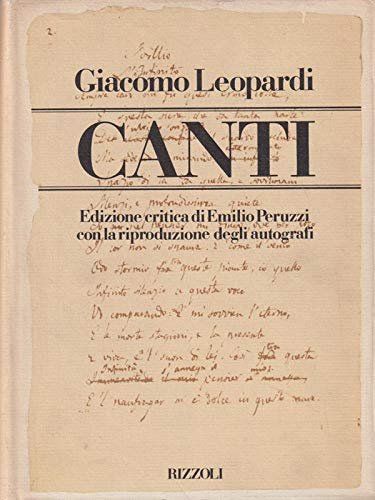 Canti. , Rizzoli 1981 italiano, Prima edizione Rizzoli - dicembre 1981 - Edizione critica di Emilio Peruzzi con la riproduzione degli autografi - in COPERTINA RIGIDA rivestita di sovracoperta. Sovracoperta leggermente ingiallita, con tracce di polvere, con lievi segni di usura in particolare su qualche spigolo e qualche piccolo strappo sul bordo superiore posteriore. Pagine all'interno imbrunite fattore tempo ma volume nel complesso ancora in buone condizioni. Disponibilità immediata e spedizione con corriere tracciata.