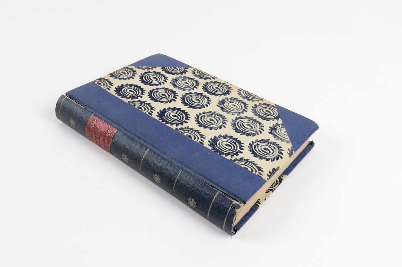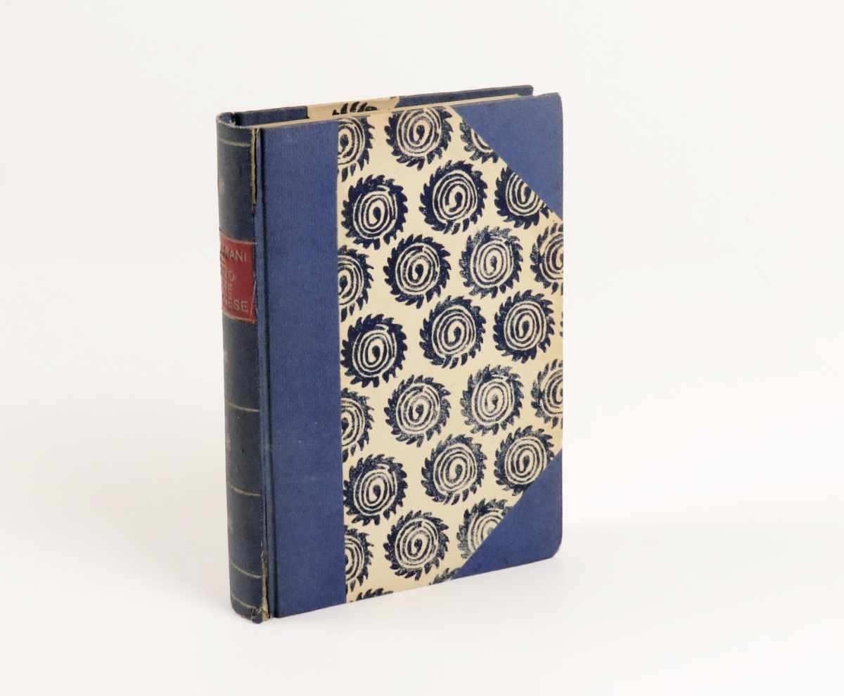 - legatura in mezza tela con angoli; tassello rosso al dorso con titoli in oro; conserva il piatto anteriore della brossura originale,