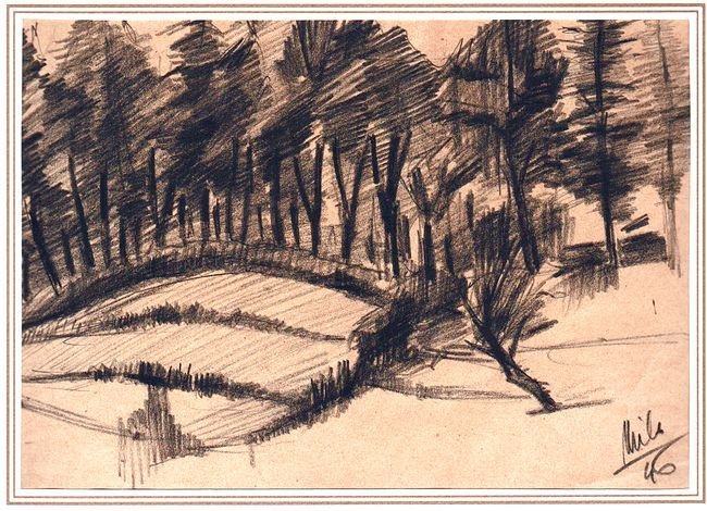 Carboncino in nero con firma a destra non decifrata e data '46.