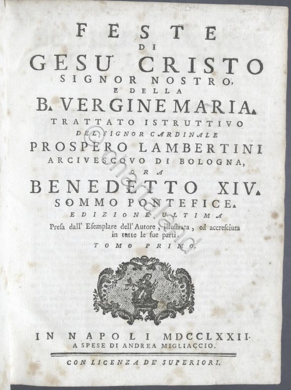 Cardinale Prospero Lambertini - Feste di Gesu' Cristo Signor nostro - ed. 1772