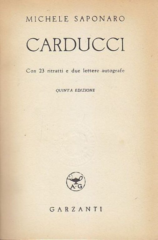 CARDUCCI di Michele Saponaro Con 23 ritratti e due lettere autografe.