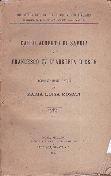 In-16° grande, pp. 128, brossura editoriale. Restauri al dorso, ingialliture fisiologiche. In buono stato. Ex-libris. Prima edizione. Importante studio di storia politico-diplomatica risorgimentale corredato da numerosi documenti inediti. Biblioteca storica del Risorgimento italiano pubblicata da T. Casini e V. Fiorini (serie V, n. 2).