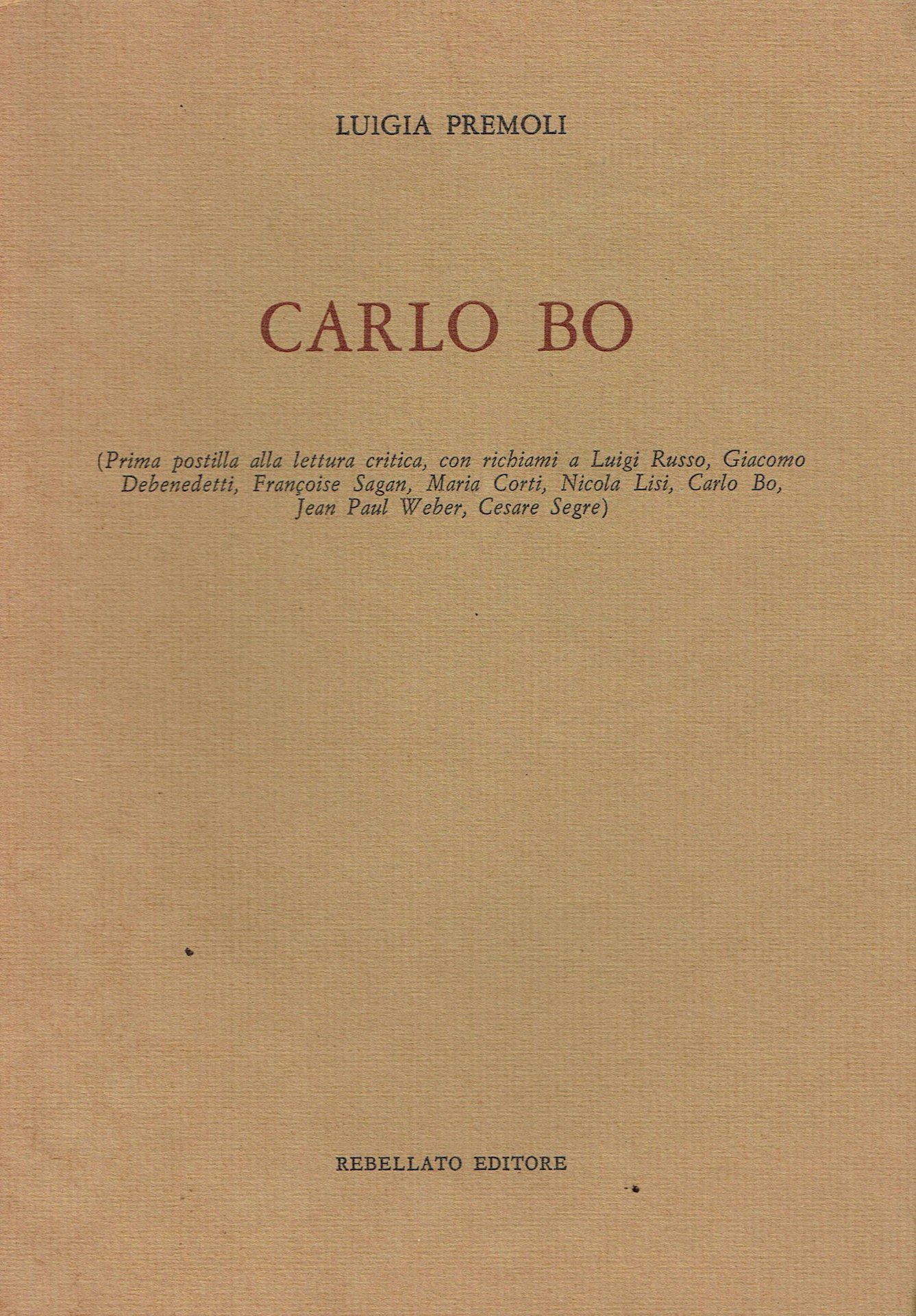 Rebellato, 1969. Collana Saggistica. (prima postilla alla lettura critica, con richiami a Luigi Russo, Giacomo Debenedetti, Françoise Sagan, Maria Corti, Nicola Lisi, Carlo Bo, Jean Paul Weber, Cesare Segre). Contiene alcuni saggi inediti e tre già pubbl. in Il centenario antidantesco, Rebellato, 1966. 132 pp, brossura, 132 pp. brossura Perfetto (Mint) copertina leggermente scolorita.