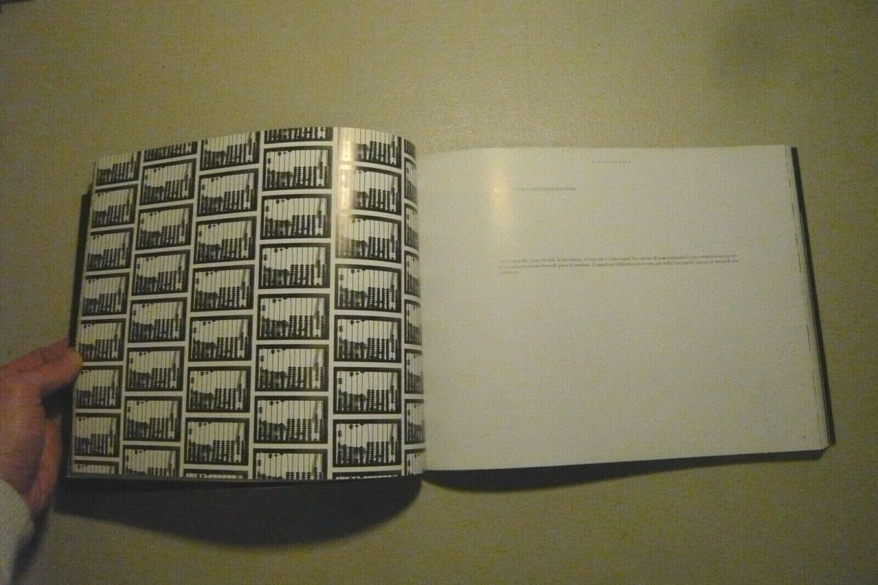 Con fotografie in bianco e nero stampate su carta plastificata.