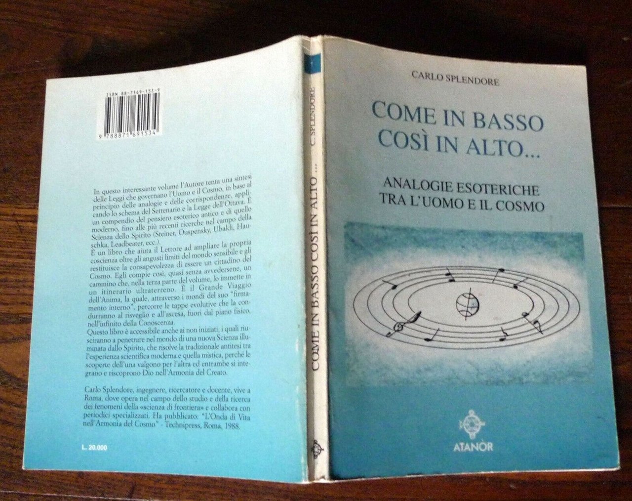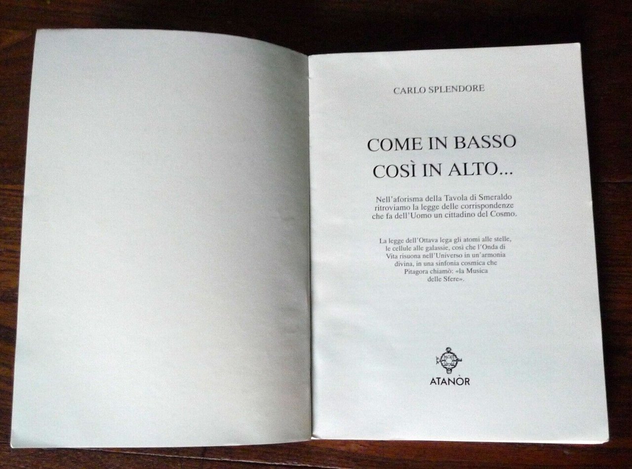 Carlo Splendore,COME IN BASSO COSÌ IN ALTO...ANALOGIE ESOTERICHE TRA L'UOMO E IL COSMO.Atanòr, Roma 1994,brossura, 21x15 cm., pp.193,con illustrazioni in nero e a colori,ISBN: 88-7169-153-9,peso: g.400