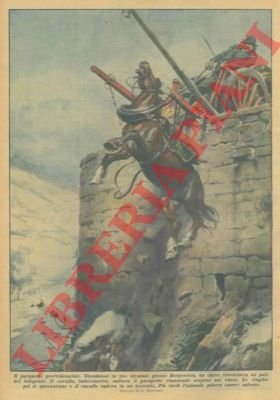 Carro rovescia un palo del telegrafo e il cavallo imbizzarrito salta il parapetto rimanendo sospeso nel vuoto e cadendo poi in un torrente.