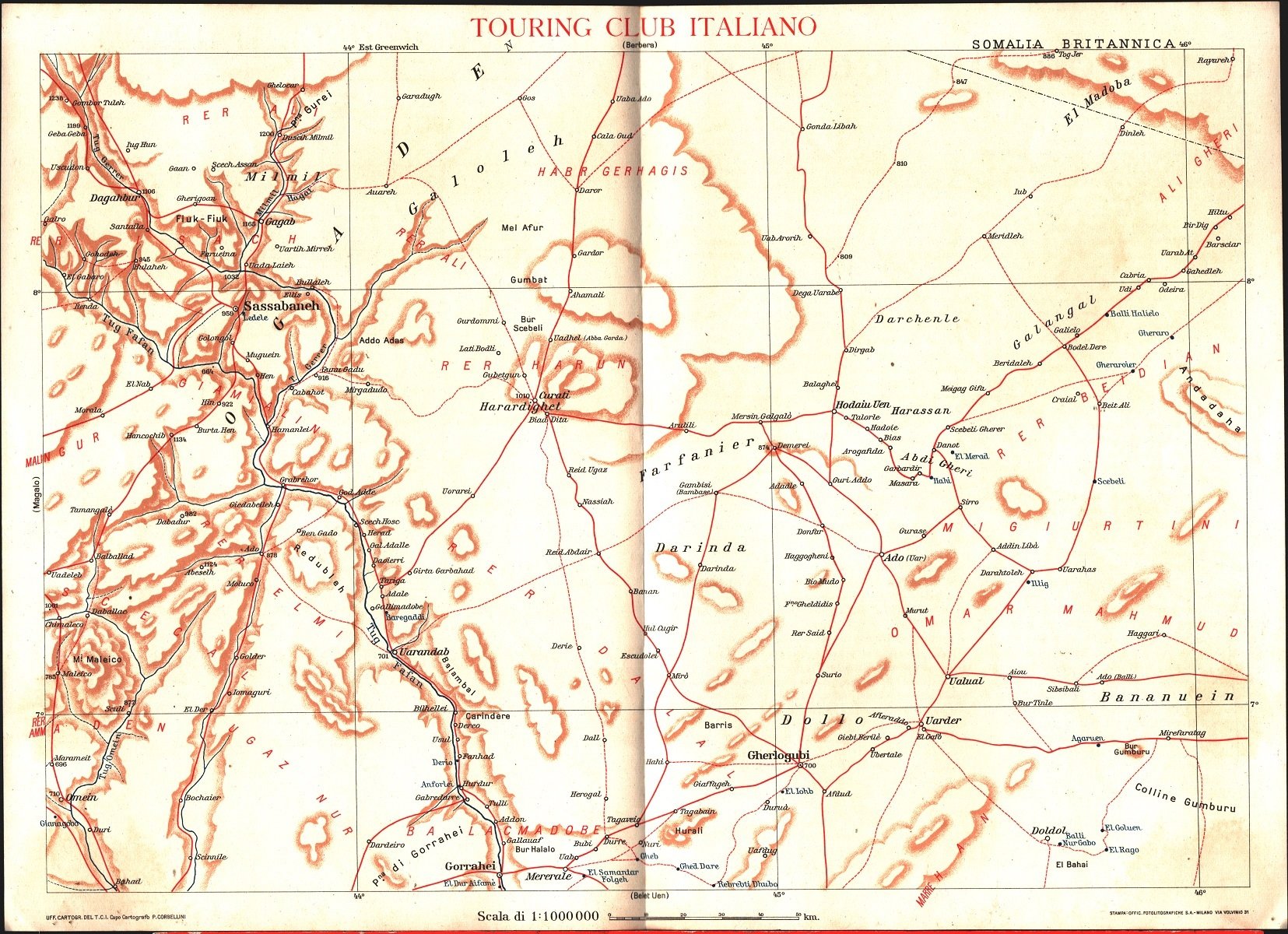 Carta dell'Etiopia. Sassabaneh. scala 1:1000000. 1936