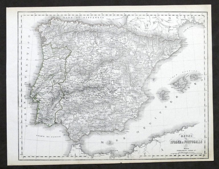 Carta geografica Regni Spagna e Portogallo - Ed. Stabilimento Civelli - 1880 ca. Dimensioni tavola: 32 x 42 cm ca. Tratti colorati a mano. Condizioni molto buone.