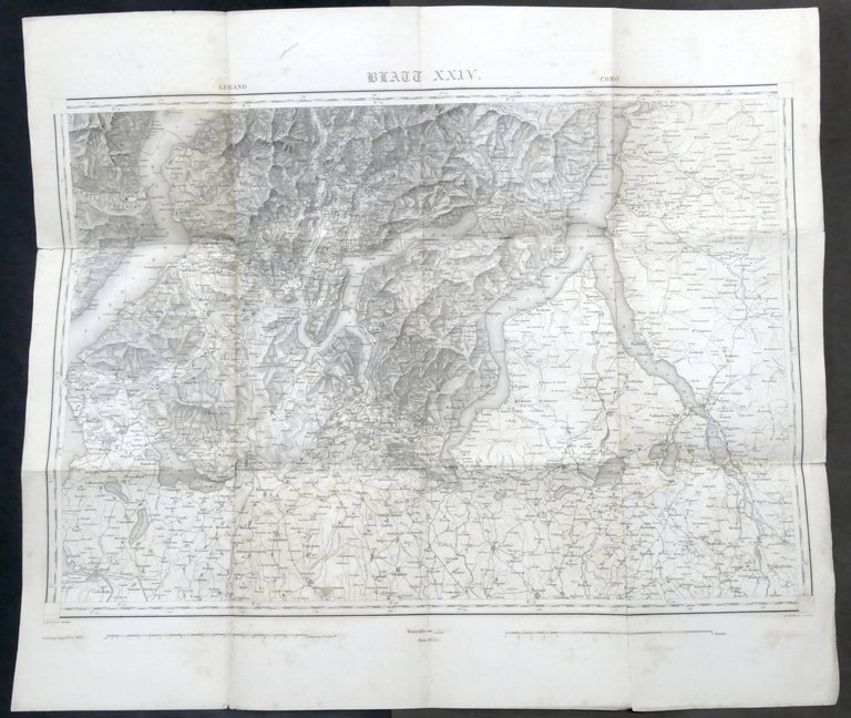 Carta geografica - Zona Lago di Lugano e Lago di Como - 1876 Dimensioni foto: 66 x 76 cm ca.Condizioni generali buone. Piccoli strappi in corrispondeza di alcune pieghe.