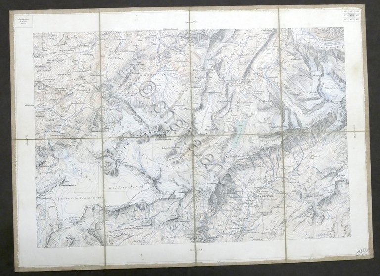 Carta geografica Svizzera zona Wildstrubel / Leukebard - Fine '800 - ed. Artaria 8 pannelli cartacei applicati su tela Dimensioni: 29 x 40 cam ca. Condizioni molto buone.