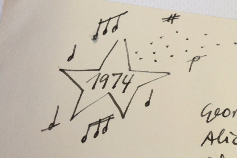 Carte de voeux adressée à la famille Raillard pour l'année 1974 signée par Albert Rafols-Casamada et sa femme Maria