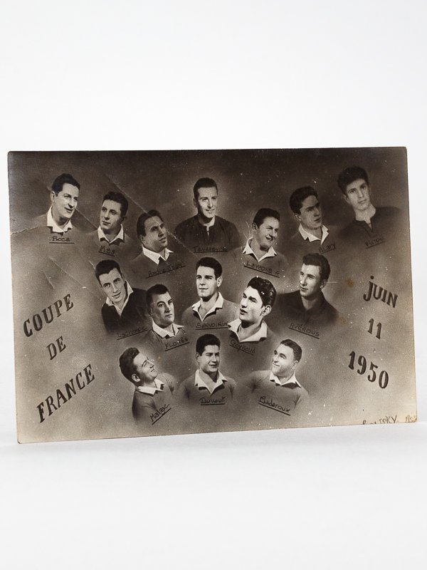 Carte postale : "Coupe de France 11 Juin 1950" signé par 17 joueurs [ Equipe de rugby à XV AS Béziers ]