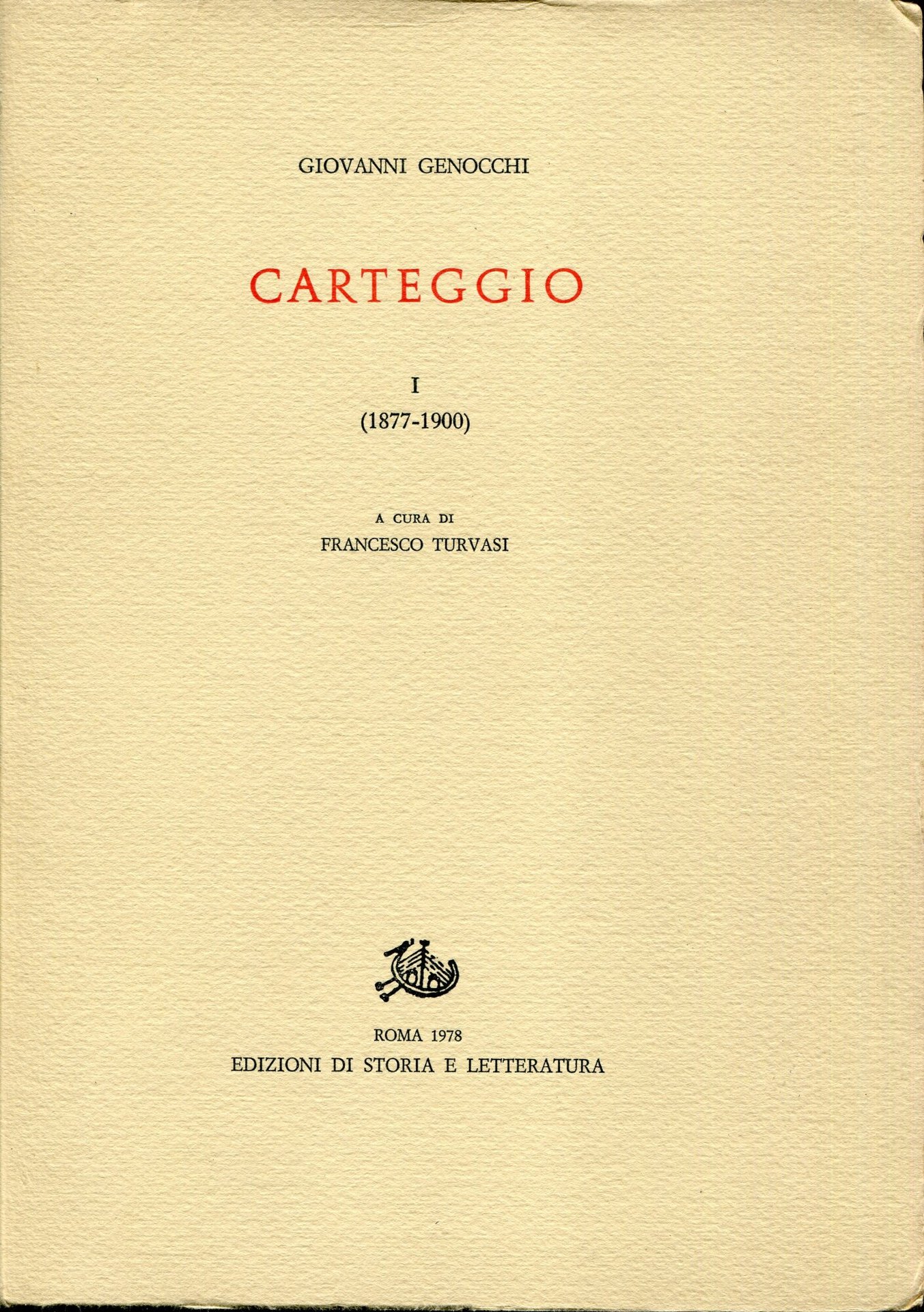 Carteggio 1: 1877-1900 a cura di Francesco Turvasi | Libri antichi e moderni | Giovanni Genocchi, ,Giovanni Genocchi