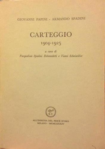 Carteggio 1904-1925. A cura di Pasqualina Spadini Debenedetti e Vanni Scheiwiller.