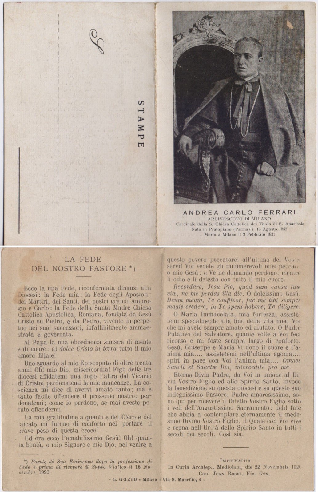 Stato: non viaggiata. Imprimatur 1920