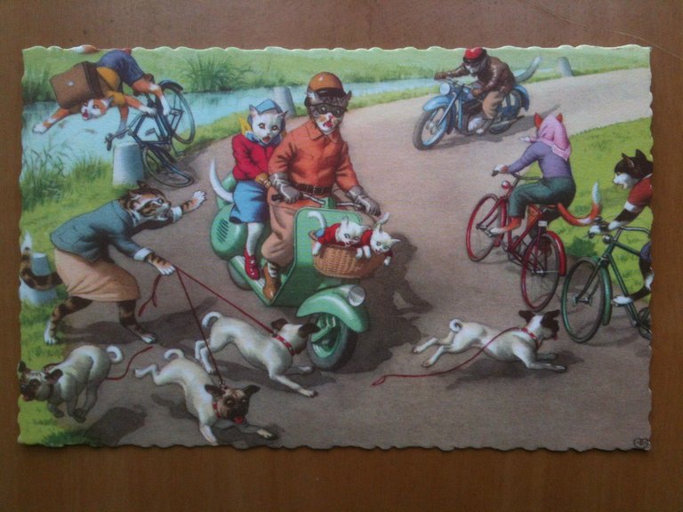 Cartolina illustrata metà '900 gatti antropomorfi - non viaggiata