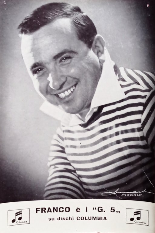 Cartoncino Fotografico Columbia - Complesso musicale Franco e i G 5 - Anni '60 Dimensioni 15 x 10 cm Franco e i "G.5" sono stati un complesso musicale italiano attivo tra la fine degli anni quaranta e i primi anni sessanta. . Condizioni molto buone.