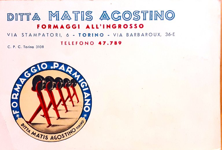 Cartoncino pubblicitario Ditta Matis Torino anni '40 ca.