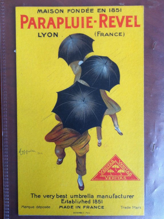 PARAPLUIE REVELMAISON FONDÉE EN 1851 LYON (France) Cartoncino pubblicitario originaleIllustrazione CappielloFormato 11,5x17 cm in ottimo stato (15 g) E19516