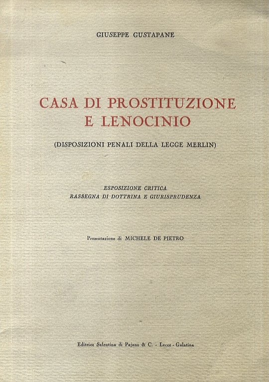 Casa di prostituzione e lenocinio. (Disposizioni penali della legge Merlin). Esposizione critica, rassegna di dottrina e giurisprudenza. Presentazione di M. Di Pietro.