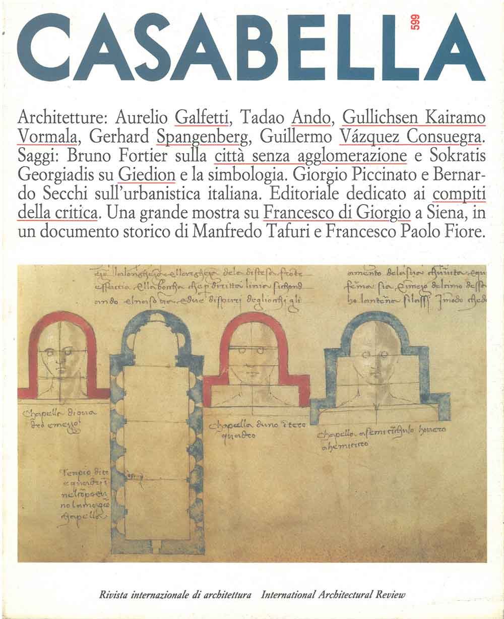 Casabella. Rivista internazionale di architettura. International Architectural Review. N. 599, 1993 Direttore: V. Gregotti