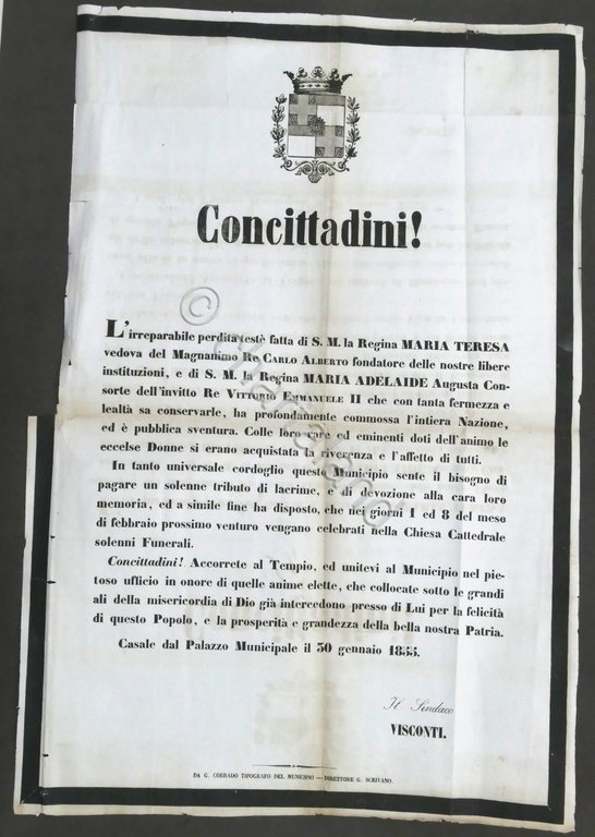 Casale - Avviso celebrazione funerali Regine Maria Teresa e Maria Adelaide 1855