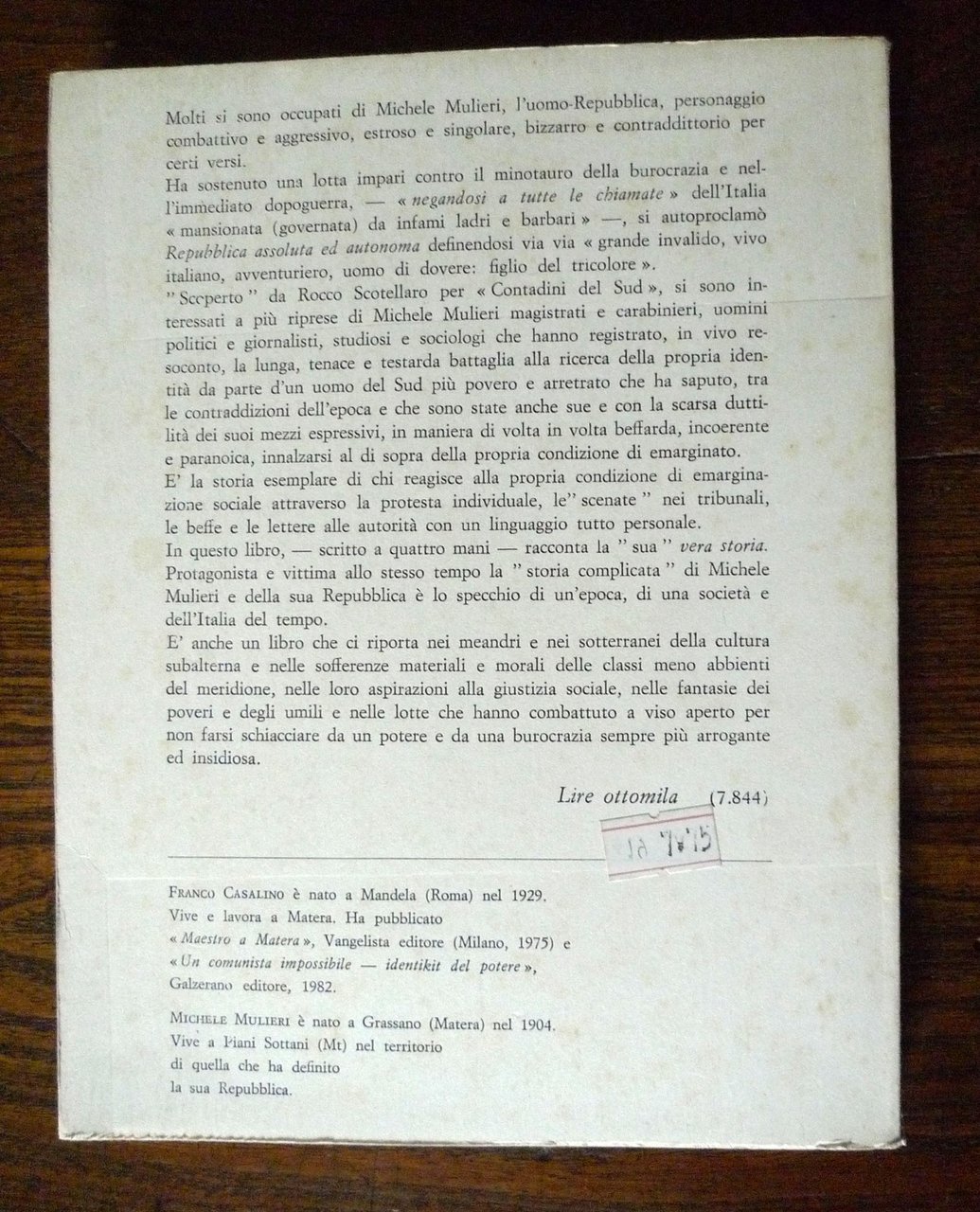Franco Casalino - Michele Mulieri,LA VERA STORIA DI MICHELE MULIERI.Galzerano Editore, Casalvelino Scalo (SA) 1982,prima edizione: aprile 1982,brossura, 21x166,5 cm., pp.207,illustrazioni fotografiche in bianco e nero,peso: g.350cod.8025bisCONDIZIONI DEL LIBRO: molto buone,pagine ingiallite