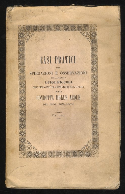 Casi pratici con ispiegazioni e osservazioni dell'avvocato Luigi Piccoli che servono di appendice all'opera della condotta delle acque del prof. Romagnosi.