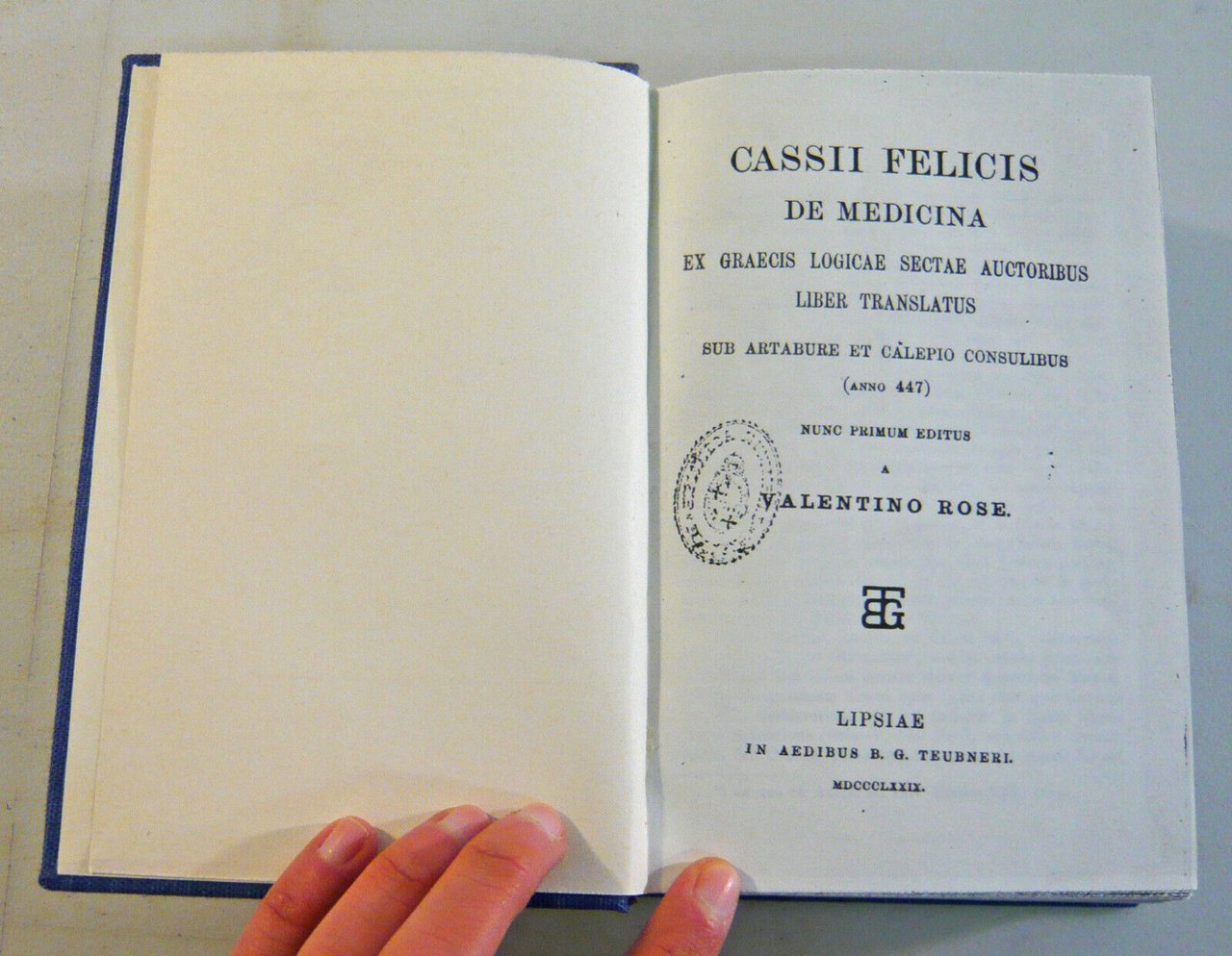 Cassio Felice,CASSII FELICIS DE MEDICINA.1879 Teubner[anastatica,storia,latino