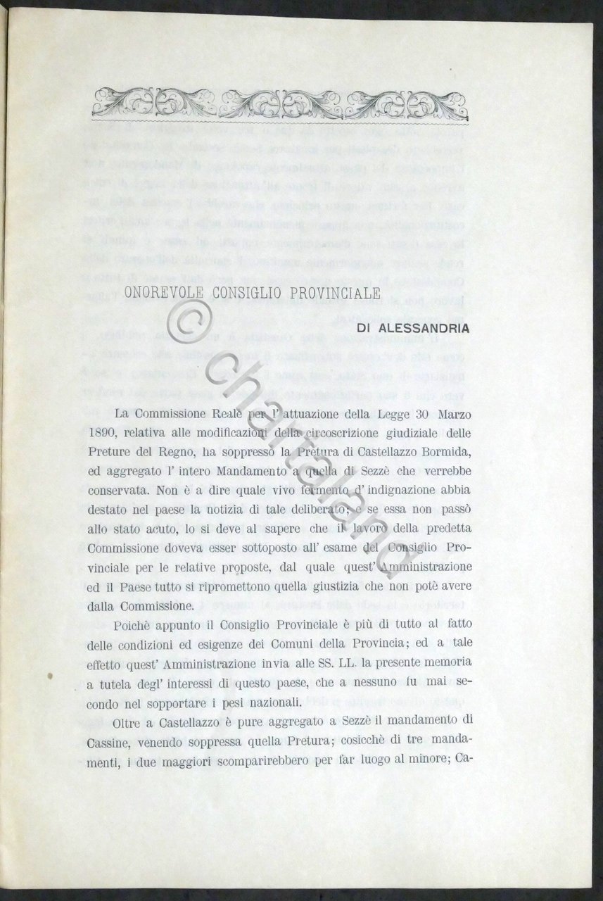 Castellazzo Bormida - Memoriale per la conservazione della Pretura - 1891