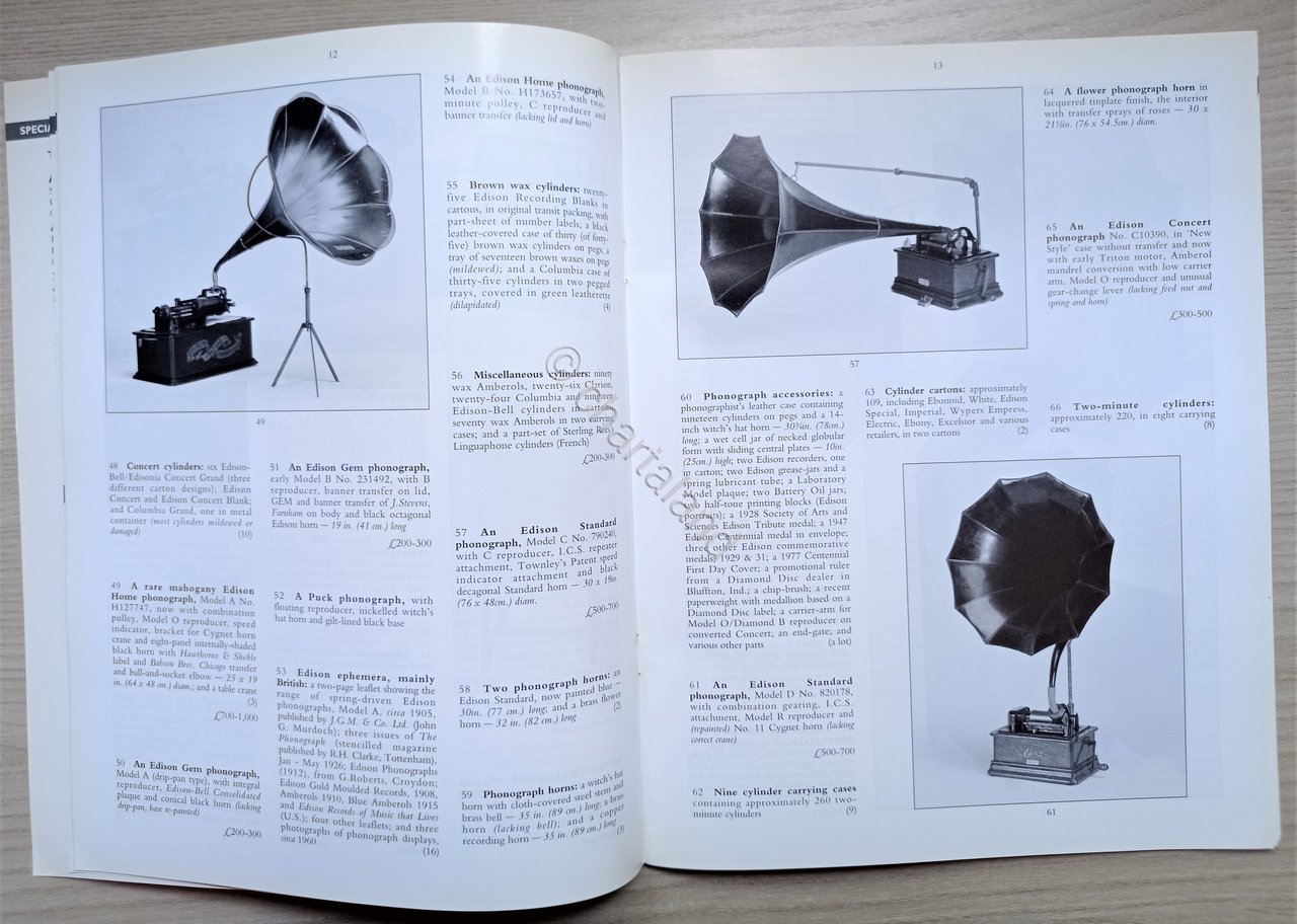 Catalogo Asta Christie's South Kensington - Mechanical Music, Edison and Other Talking Machines - 6 August 1998 Testo in lingua inglese. Pagine 30 con illustrazioni. Copertina morbida. Condizioni molto buone.
