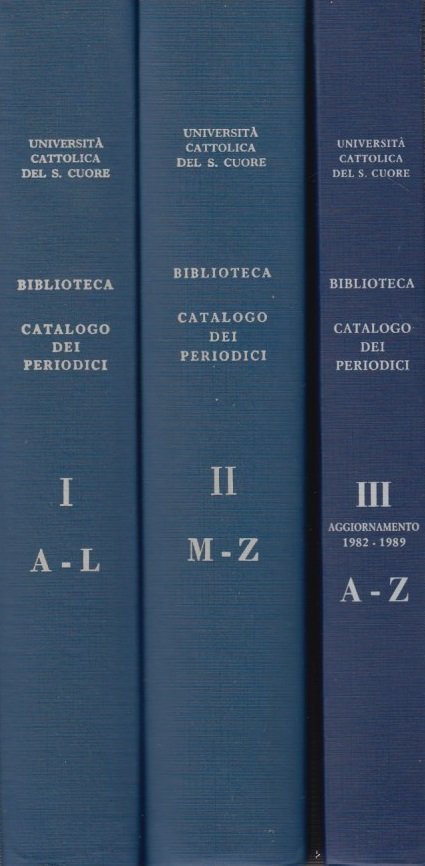 Catalogo delle pubblicazioni periodiche possedute dalla Biblioteca. Volume primo A-L - Volume secondo M-Z . Aggiornamento 1982-1989 A-Z