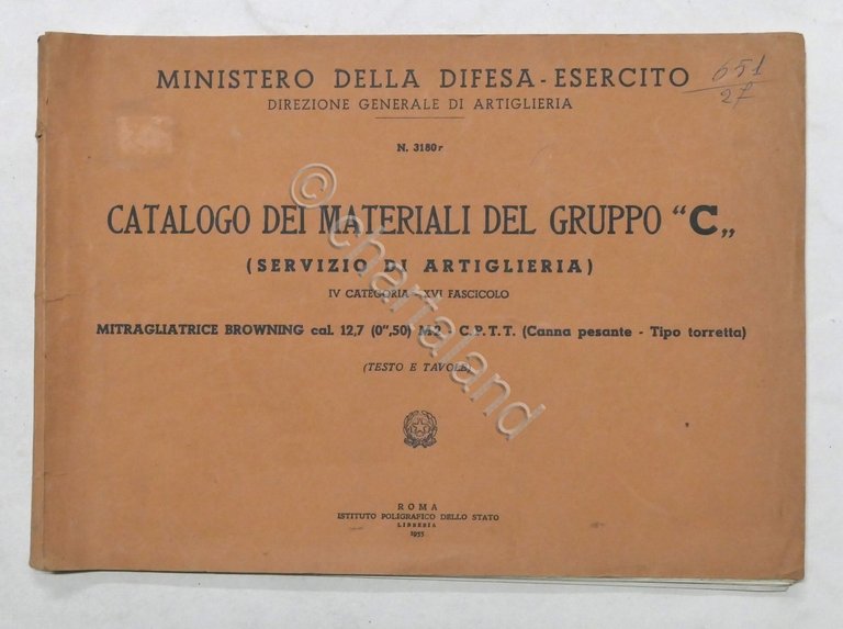Catalogo Materiali Gruppo C Artiglieria Mitragliatrice Browning cal. 12,7 - 1955