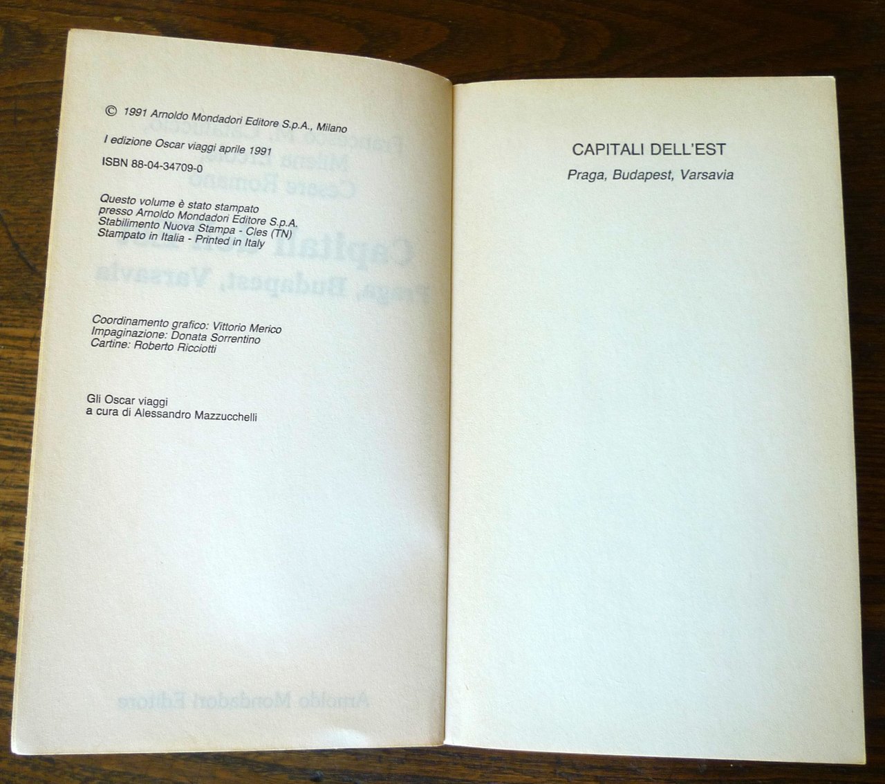Fracesco M. Cataluccio - Milena Ercole -Cesare Romanò,CAPITALI DELL'EST.PRAGA, BUDAPEST, VARSAVIA.Arnoldo Mondadori Editore, Milano 1991,prima edizione Oscar viaggi: aprile 1991,brossura, 18,5x11 cm., pp.404,OSCAR VIAGGI,ISBN: 88-04-34709-0,peso: g.350cod.9578CONDIZIONI DEL LIBRO: molto buone,imperfezioni alla copertina,pagine leggermente ingiallite