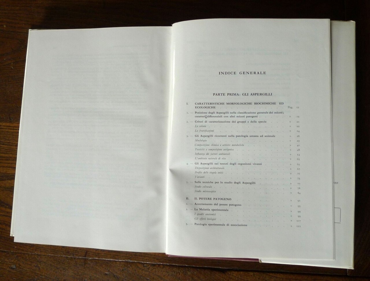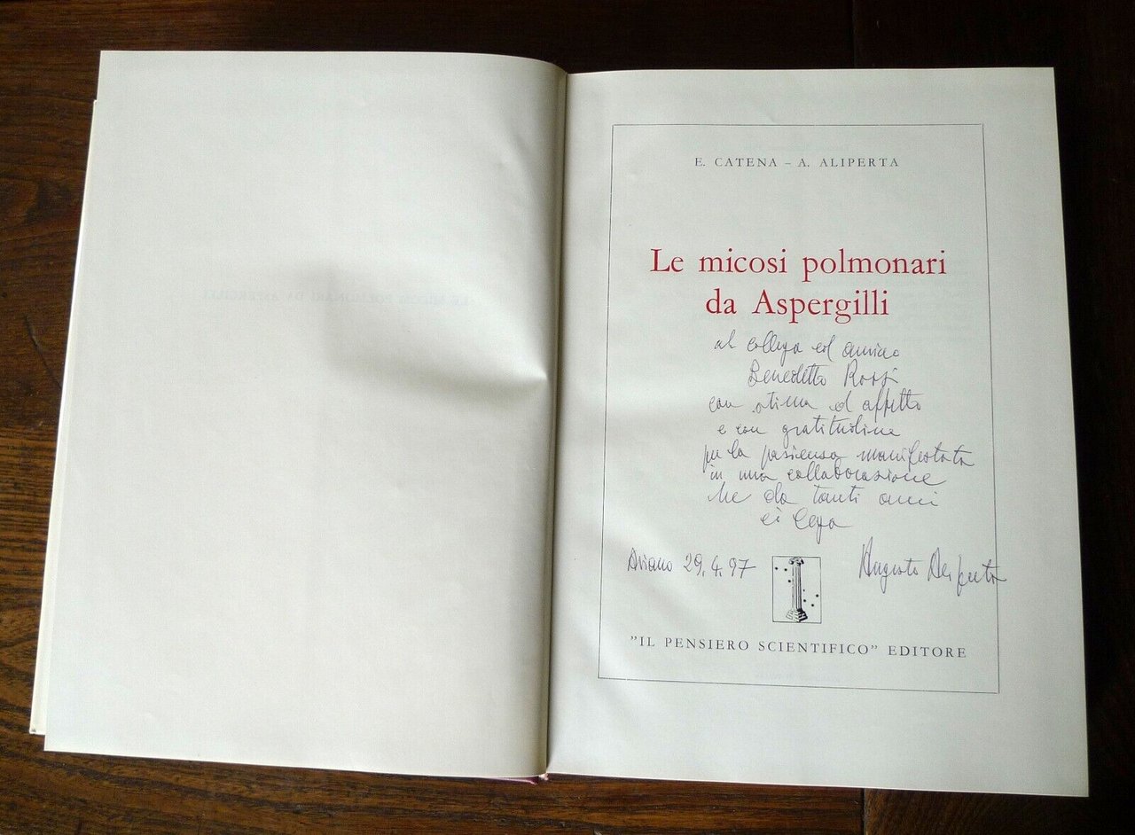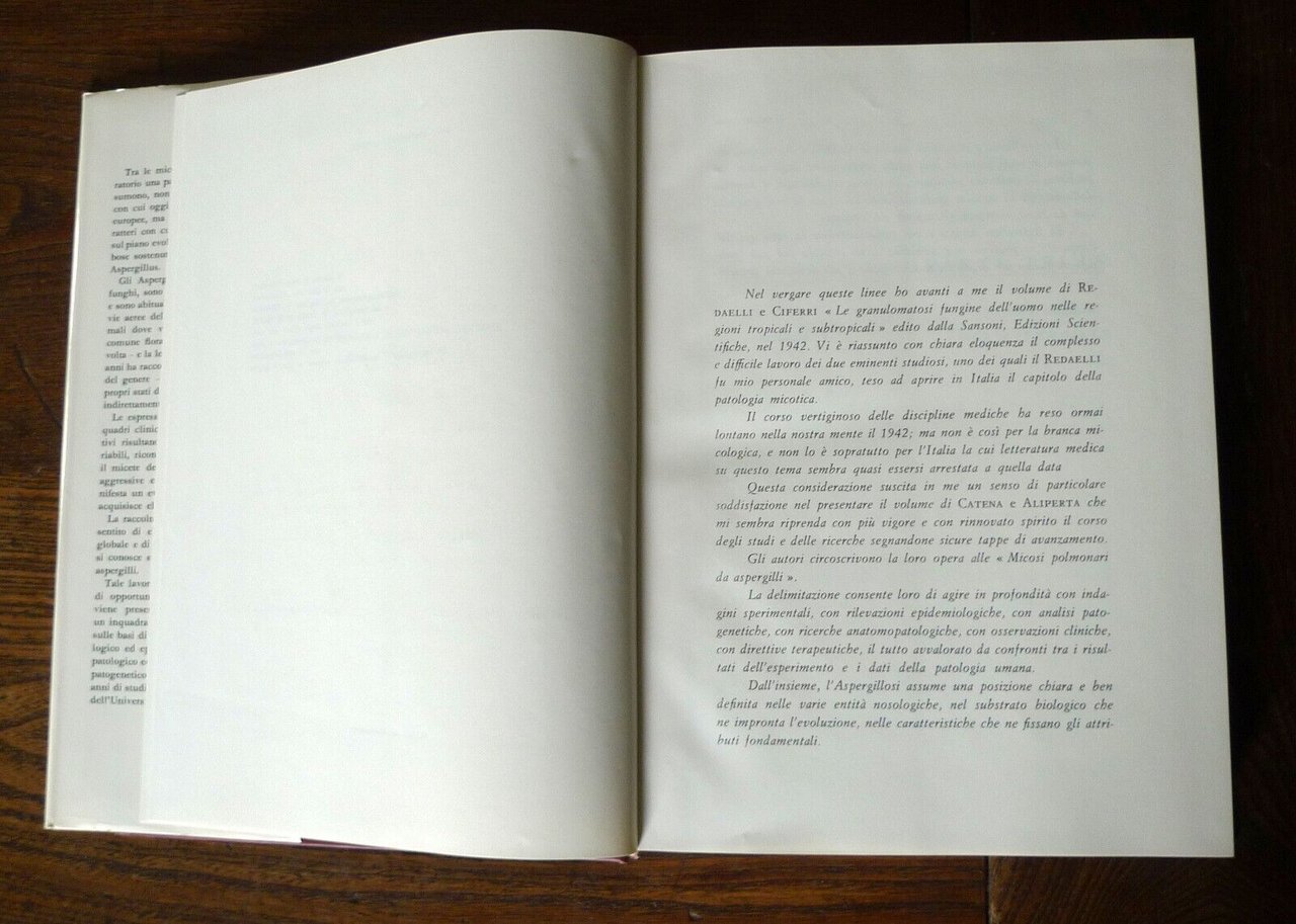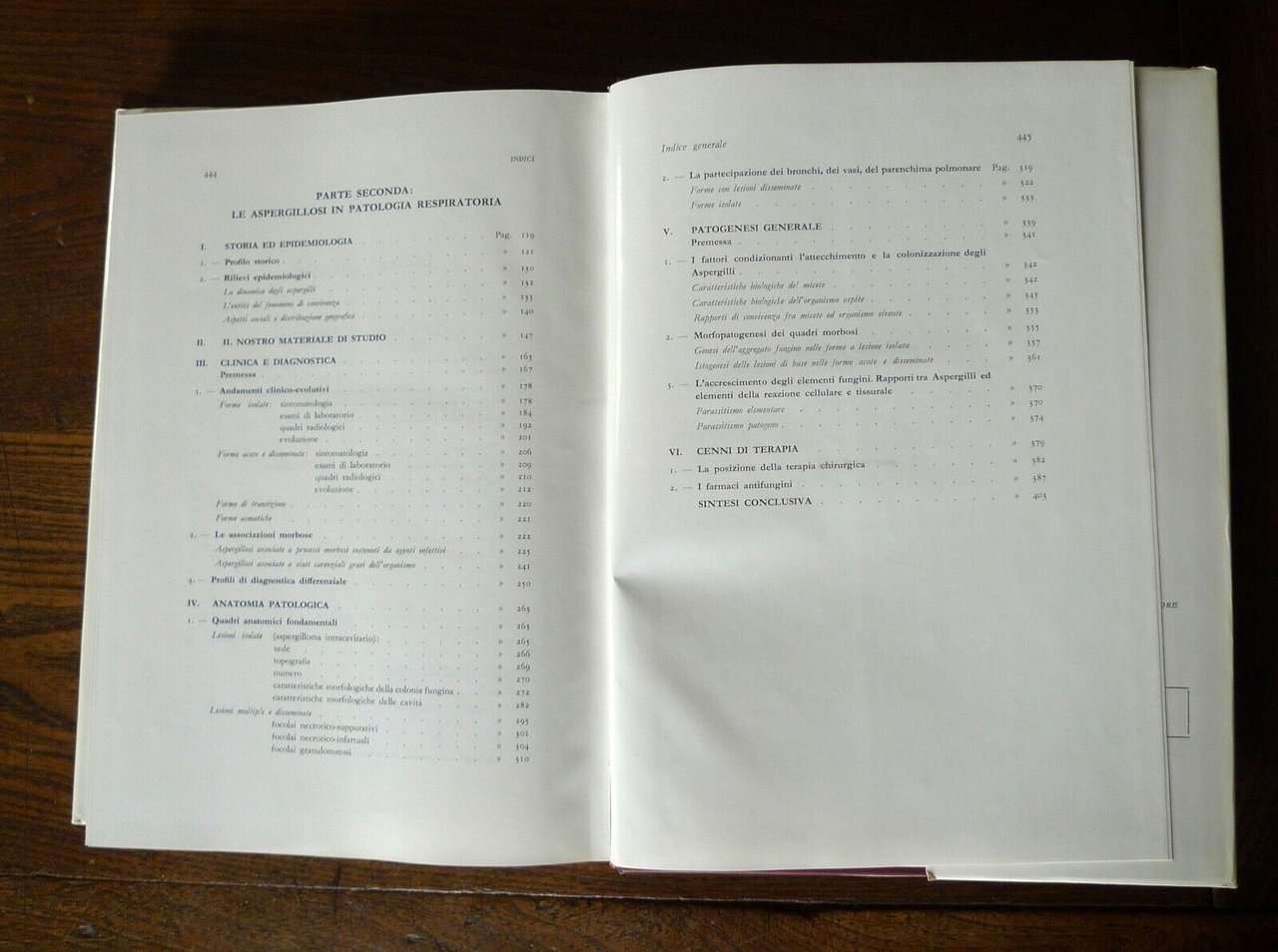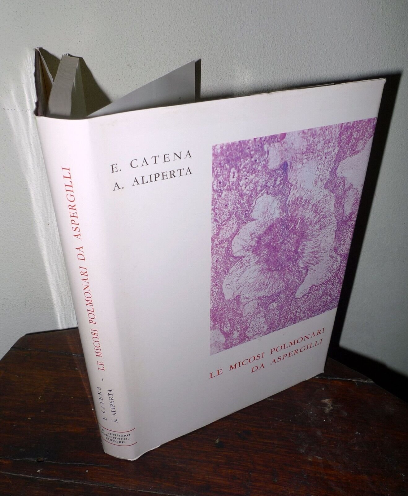 E. Catena, A. Aliperta,LE MICOSI POLMONARI DA ASPERGILLI."IL PENSIERO SCIENTIFICO" EDITORE, Roma 1966,copertina rigida, rilegatura in pelle,sovraccoperta illustrata, 24,5x18 cm., pp.441,illustrazioni in bianco e nero,alcune a colori,peso: kg.1,2