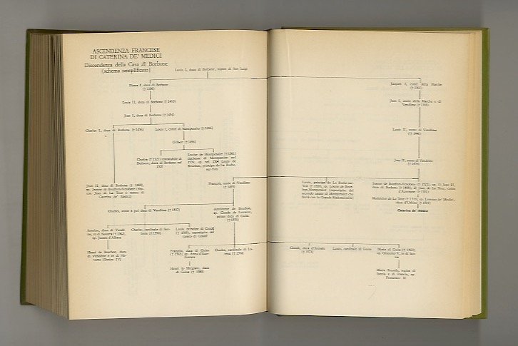Firenze, G. C. Sansoni, 1980, in-8, cartone editoriale con sovraccoperta, pp. 626, (2). Con alberi genealogici, riferimenti cronologici, fonti ed orientamenti bibliografici. Ex libris applicato. Ottime condizioni.