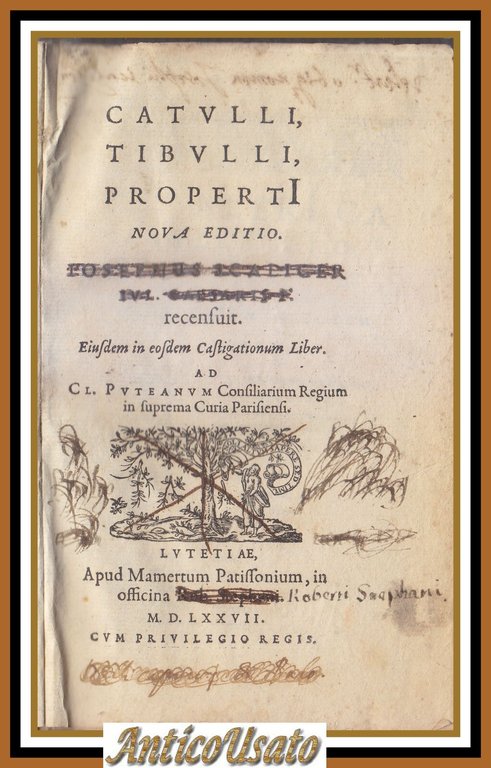Prima edizione della celebre e più volte ristampata edizione di Catullo Tibullo e Properzio, curata dallo studioso francese Joseph Justus Scalinger (1549-1609), uno dei più influenti studiosi classici del Rinascimento. Il Catullo di Scalinger divenne il testo definitivo del grande poeta lirico e, come molte delle opere di Scalinger, un modello per cultura classica.