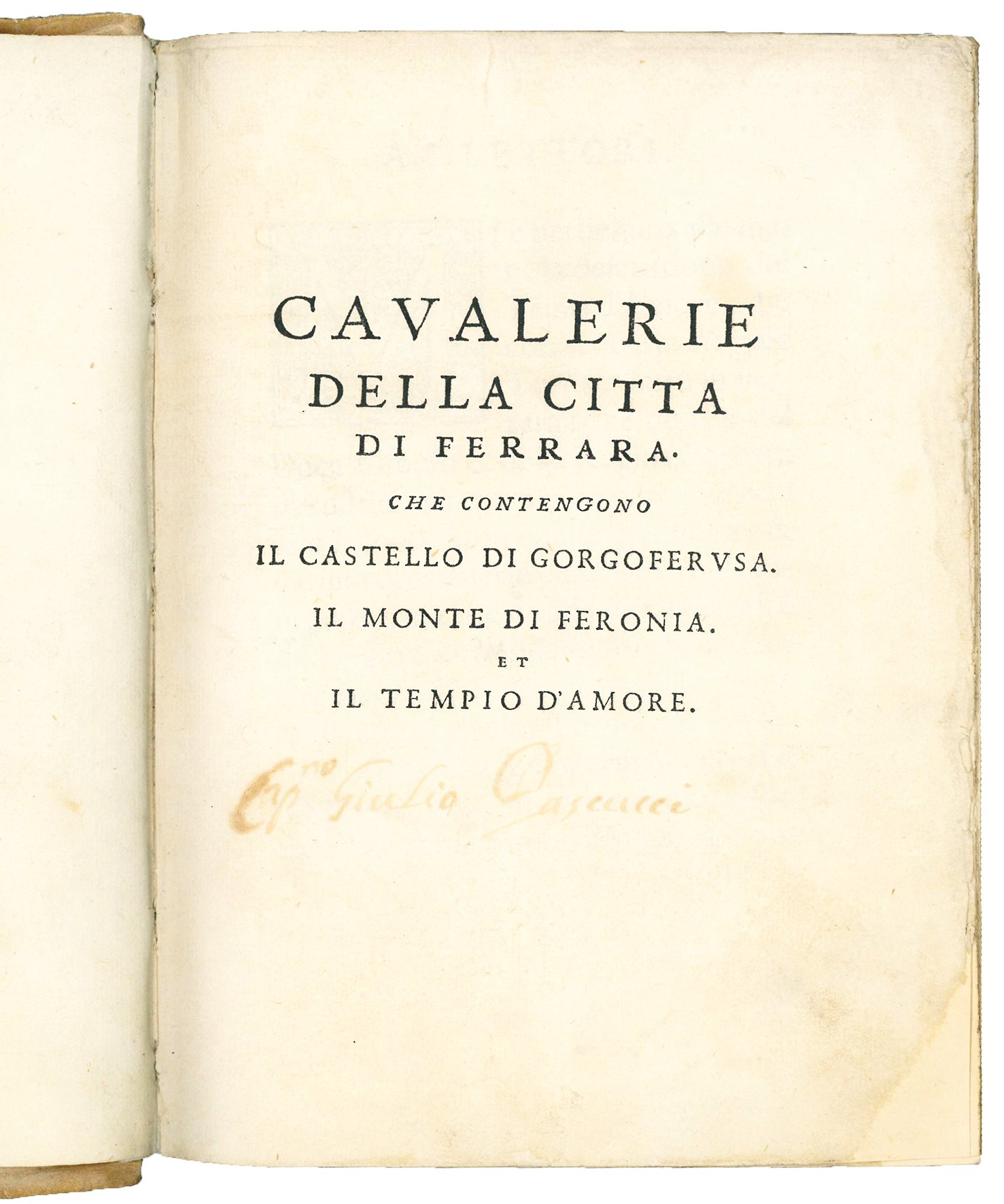 Cavalerie della città di Ferrara che contengono il Castello di Gorgoferusa, Il Monte di Feronia, et il Tempio d'amore