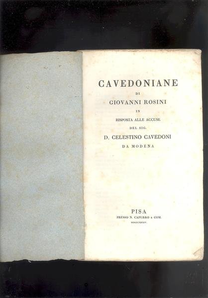 CAVEDONIANE DI GIOVANNI ROSINI IN RISPOSTA ALLE ACCUSE DEL SIG. D. CELESTINO CAVEDONI DA MODENA .