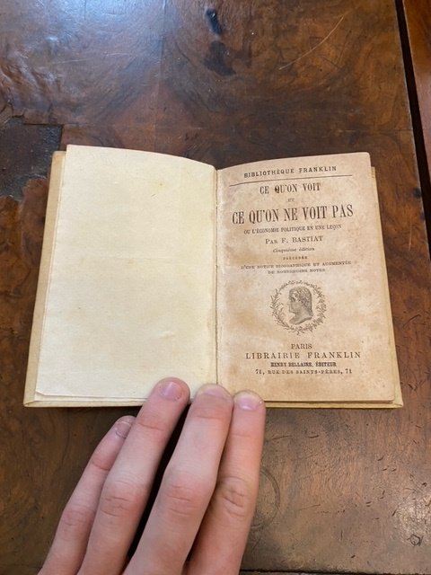 Ce qu'on voit et ce qu'on ne voit pas ou l'economie politique en un leçon par F. Bastiat. Cinquième edition