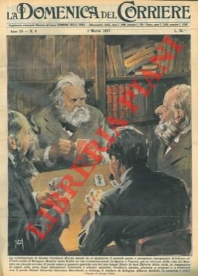 Celebrazione dei 50 anni dalla morte di Giosué Carducci. Famosa vignetta delle partite a carte nella Libreria Zanichelli, a Bologna.